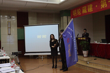 研究会常务副秘书长叶广云将象征着田野考察仪式启动的大旗授予明轮藏建工作代表