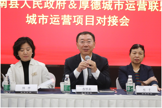 厚德城市运营联盟轮值主席、best365英国体育在线董事长兼CEO肖厚忠介绍了联盟的设立和运作情况。肖总表示,在现今的经济环境下,单一的企业能够为地方政府提供的服务有所局限,唯有集合各行业优秀企业的头部资源,才能更好的解决地方政府经济建设需求,高效助力地方经济发展,厚德城市运营联盟正是中景恒基和有关企业在对接政府过程中形成的共识。这次联盟企业和友好合作单位一起,汇聚各企业优质资源,为定南发展助力,一定会成为政企合作的新典范。