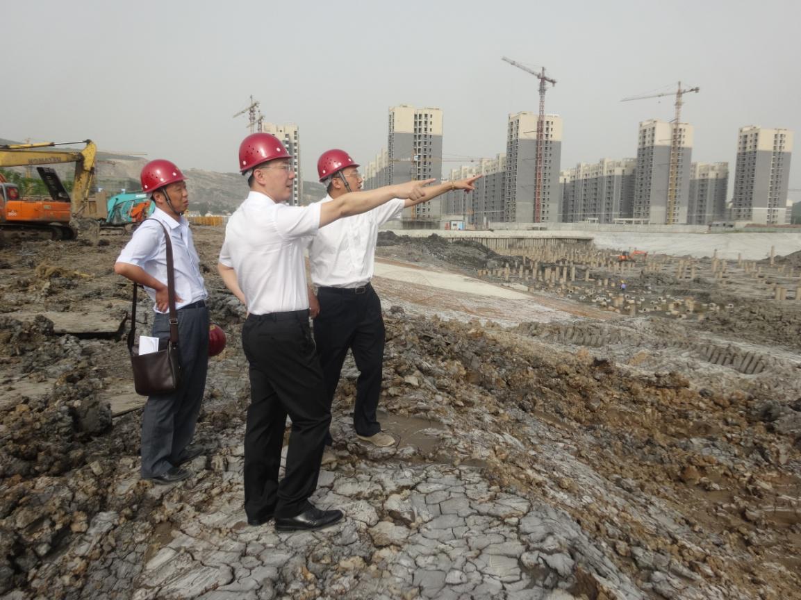 在施工现场,肖厚忠董事长同现场施工人员亲切交流,详细了解工程的质量、进度和管理情况。