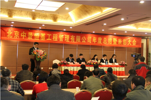 2014年12月28日,北京中景恒基工程管理有限公司2014年度总结暨表彰大会在北京宣武门酒店隆重举行。集团副总裁桓朝晖,公司总经理肖厚志、公司常务副总经理汲姝丽、副总经理黄继奎、陆井卫、叶蓉蓉等领导以及全体员工出席本次会议。大会由公司副总经理黄继奎主持。