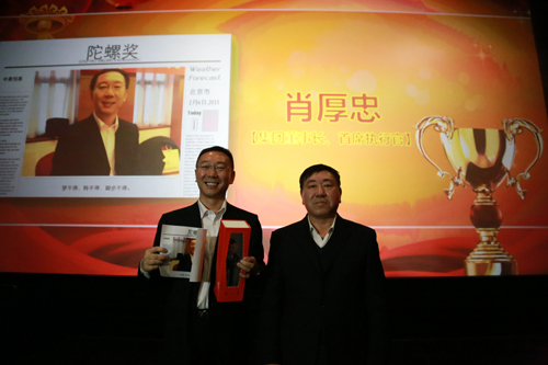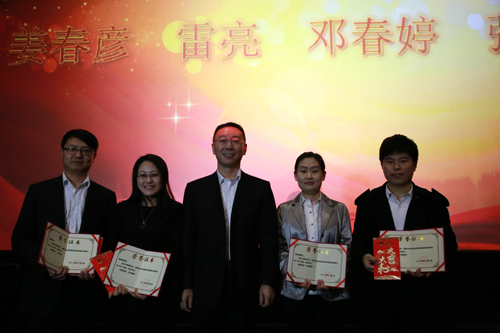 一年一度的股份公司年会是一个荣耀的舞台,也是一个弘扬中景文化的平台。在这里,公司对一年来不同战线上的各级员工们进行逐一表彰。他们这一年来以蓬勃的朝气、昂扬的锐气、无畏的勇气,开拓创新,勇往直前,成就了公司2014年度的硕果累累。本次年会沿袭传统颁发了优秀新人和优秀员工两项大奖,同时还创新的颁发了15个特色奖项。“黄牛奖”、“微笑服务奖”、“风险控制奖”“救火队员奖”、“最具人气奖”、“伯乐奖”等等奖项,生动的表现出了公司各级员工在不同岗位为公司做出的突出贡献。其中,集团董事长、首席执行官肖厚忠获得“陀螺奖”,该奖项形象的展现出肖总为中景梦甘心付出,愿做永不停歇的陀螺,不断地勾画集团未来发展蓝图的模范作用。获奖后,肖总对中景恒基各级员工一年来的辛苦工作与无私奉献表示感谢,并表达了对集团未来发展的期许,同时为在场及远在眉山、连云港、成都、杭州、郑州、南宁、广东等地的集团总部一线员工送上新春祝福。表彰活动结束后,现场放映了影片《我要你开花》,并进行观影交流,影片展现的“向上向前”、“追逐梦想”、“创客思维”等精神与中景恒基所弘扬的企业精神相符,引起了大家的广泛共鸣。