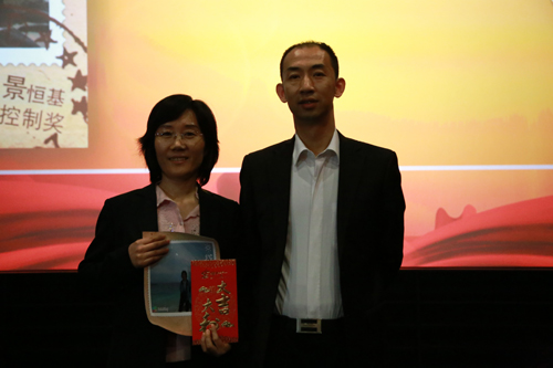 集团高级总裁张睿为获得“风险控制奖”的集团财务审计部经理罗爱霞颁奖