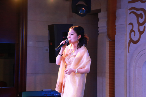 集团副总裁蔡菊演唱歌曲《草原夜色美》