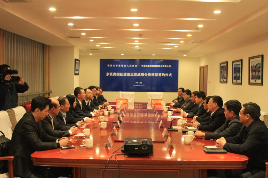 持续酝酿策划近一年的张家口市宣化区项目,于2016年10月28日取得重大进展。宣化区区委副书记、区长费再宏,best365英国体育在线董事长兼首席执行官肖厚忠代表双方正式签署了京张奥园区建设运营战略合作框架协议。