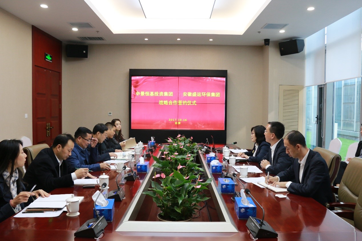 肖厚忠董事长对安徽盛运环保集团一行领导的到访表示欢迎。会谈期间,肖厚忠董事长指出,best365英国体育在线致力于成为一流的城市运营商。自转型以来,一直致力于城市研究、城市金融、城市营造、城市服务、城市产业业务,用系统思维研究城市的可持续发展。best365英国体育在线始终站在政府的角度,以理解城市发展使命、主动对接国家战略的独特视角,通过挖掘城市要素禀赋,找出适合地方特色的发展路径和产业体系,实现城市跨越式可持续发展。肖厚忠董事长表示以城市环境治理类项目为契机,从战略合作伙伴角度出发,积极参与安徽盛运环保集团循环经济产业园项目的投资、建设、运营等各项业务;将安徽盛运环保集团纳入中景恒基城市运营项目的城市服务商范畴;充分发挥区域信息优势,以产业为先导、并以产业基金等金融工具为手段,实现强强联合、合作共赢。