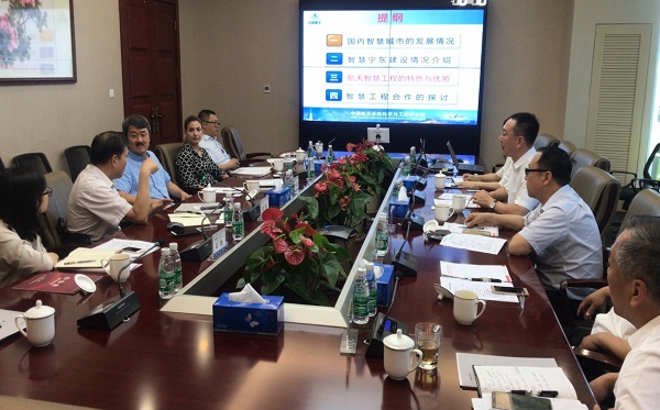 2018年5月29日,一场由学者、科研机构和企业三方对接的智慧城市项目交流会在集团视频会议室召开。来自清华大学、美国路易斯安那州立大学、中国航天十二院的教授和工程师们,与集团董事长肖厚忠、高级总裁张峰及其他相关业务负责人一起,对国内外智慧城市建设情况进行了理论研讨及案例分享。