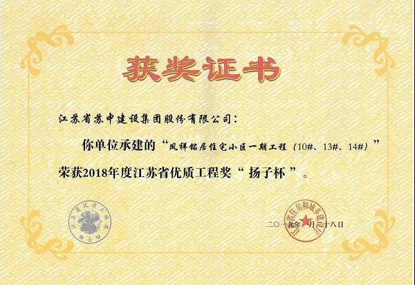 “扬子杯”的获得再次证实了凤祥铭居公司的雄厚实力和优秀的开发管控实力。目前二期项目的省级优秀工程奖“扬子杯”的评审申报工作已经展开,凤祥铭居公司会以此次获奖为契机,再接再励,为港城人民奉献更多精品工程。