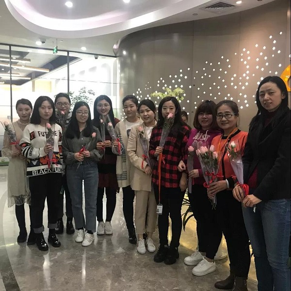 收到祝福的女同事脸上洋溢着幸福的笑容。为了祝福女同事,男同事们也积极做起了送花使者,为女同事们送上衷心的祝福。